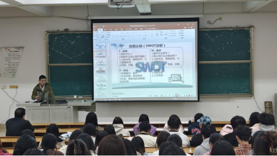 随后,学院叶慎奎老师围绕 “大学生就业指导” 主题开展专项讲解,内容涵盖自我认知、当前就业形势与政策解读、就业岗位筛选方法及就业准备要点四大模块。他结合当下就业市场趋势与往届毕业生案例,深入浅出地剖析了不同专业就业方向的优势与挑战,鼓励同学们既要正视就业竞争压力,更要以勇敢的心态迎接挑战,凭借扎实的专业技能和积极的求职态度,为未来职场发展筑牢基础。